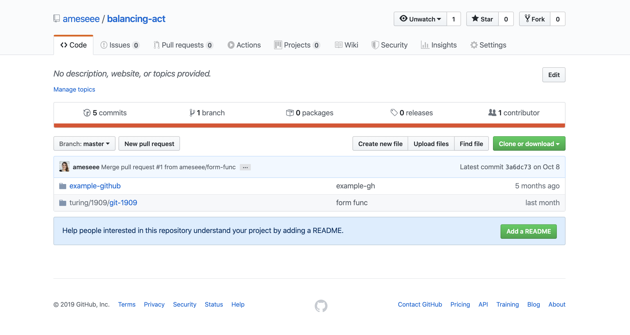 - Back in GitHub, refresh the page. You should see a page similar to what is below.