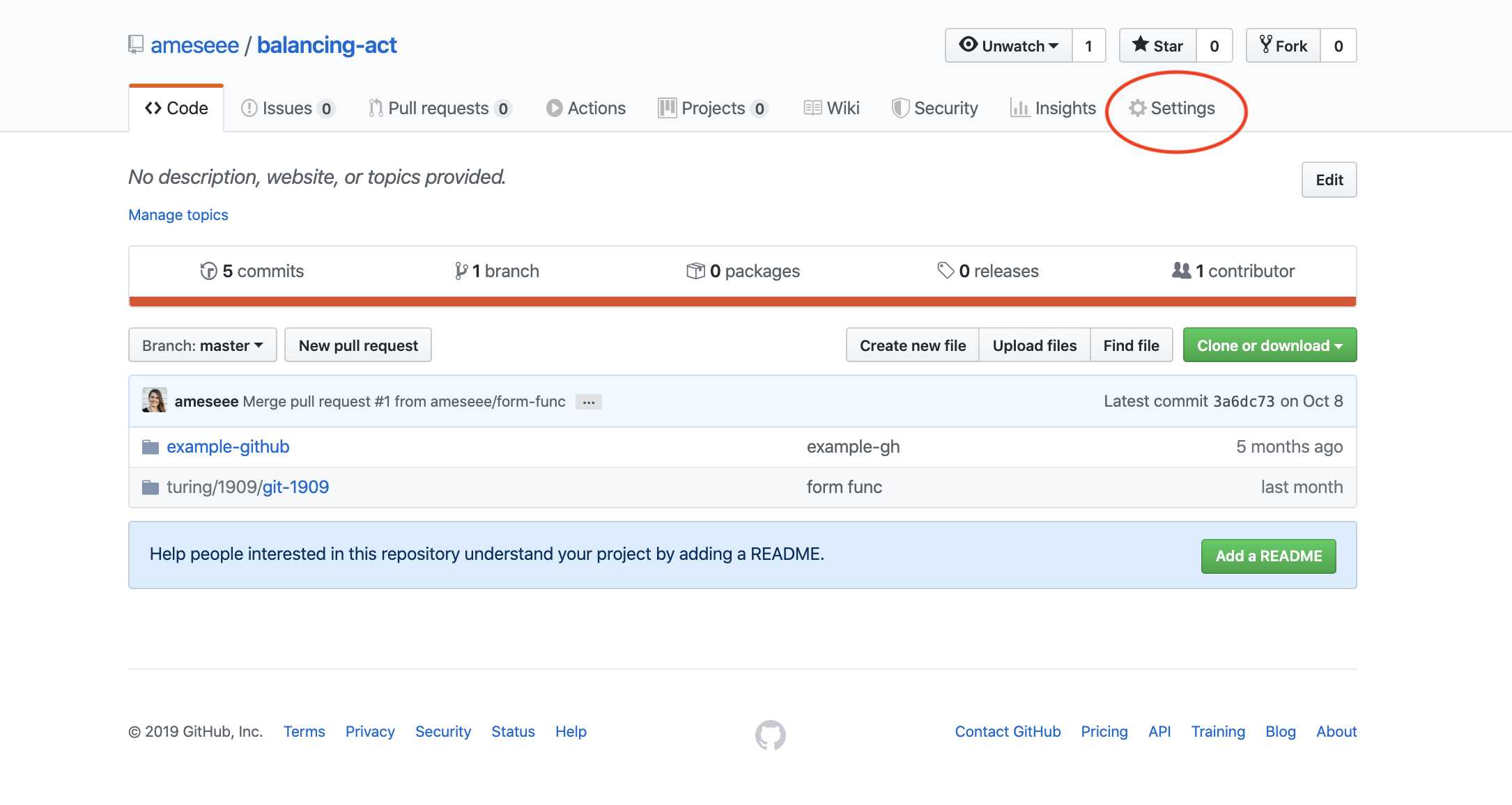 - From the main repository page, click “Settings”